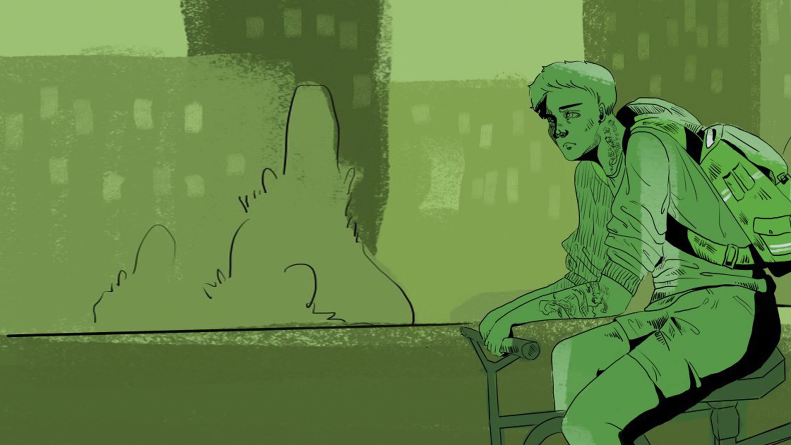 The slim youth wiped the raindrops off his hoodie and removed it, revealing a tattoo of a creature, seemingly growling at anyone bold enough to stare at it. For now, it seemed to be snarling at a group of students, who had slowed down to look at him as they walked by.